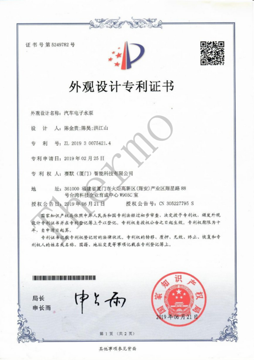 外觀設(shè)計(jì)專(zhuān)利證書(shū)